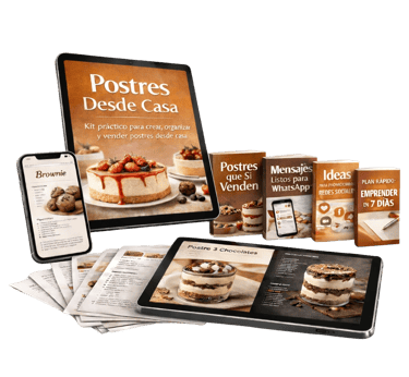 El Kit Postres Desde Casa reúne recetas prácticas, ideas de organización y recursos útiles para quienes disfrutan preparar postres en su propia cocina.